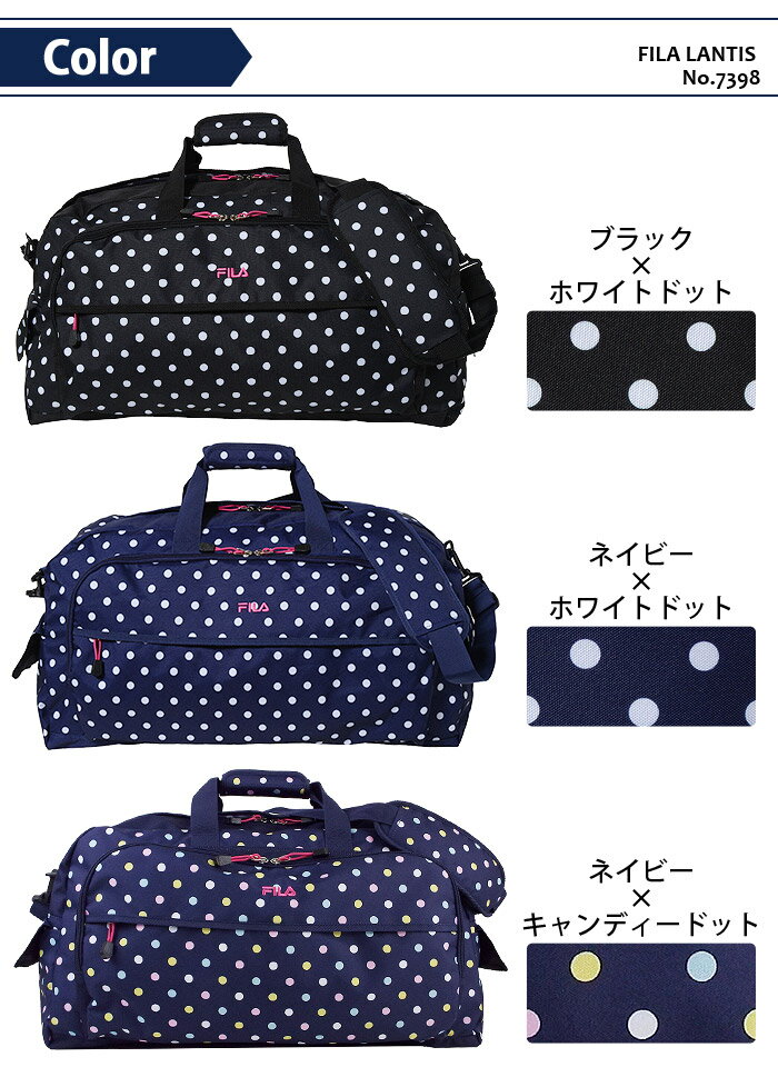 ボストンバッグ 修学旅行 女の子 FILA(フィラ)ドット柄 ボストンバッグ 42L 60cm[7398]キッズ ジュニア バッグ ボストンバッグ ネイビー ブラック 女子 可愛い かわいい 林間学校 2泊 大容量 旅行
