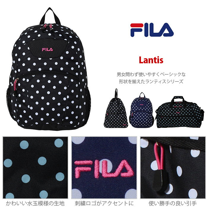 FILA(フィラ) ドット柄 ボストンバッグ ナップサックセット[7398-7396]【ボストンバッグ 修学旅行】【ボストンバッグ 可愛い】かわいい 小学生 旅行 林間学校 ナップザック ボストンバック お揃い 女の子 女子 小学校 スポーツ キャンプ 宿泊 2泊 大容量 ボストンバッグ