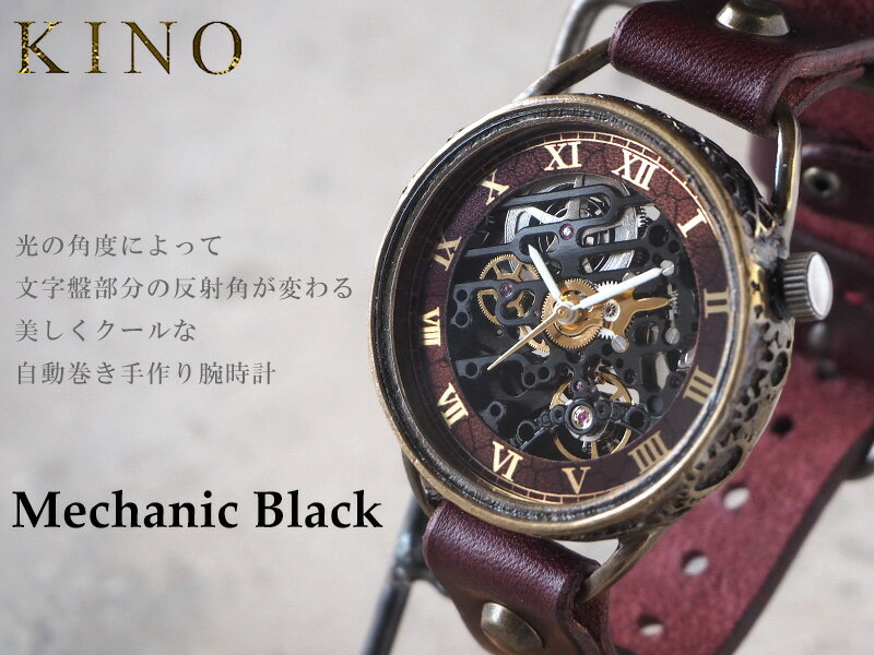 KINO(キノ) 手作り腕時計 自動巻き 裏スケルトン メカニックブラック ワインブラウン [K-15-WINE] 時計作家・木野内芳祐さんが手がける手作り腕時計ブランド“KINO(キノ)”。